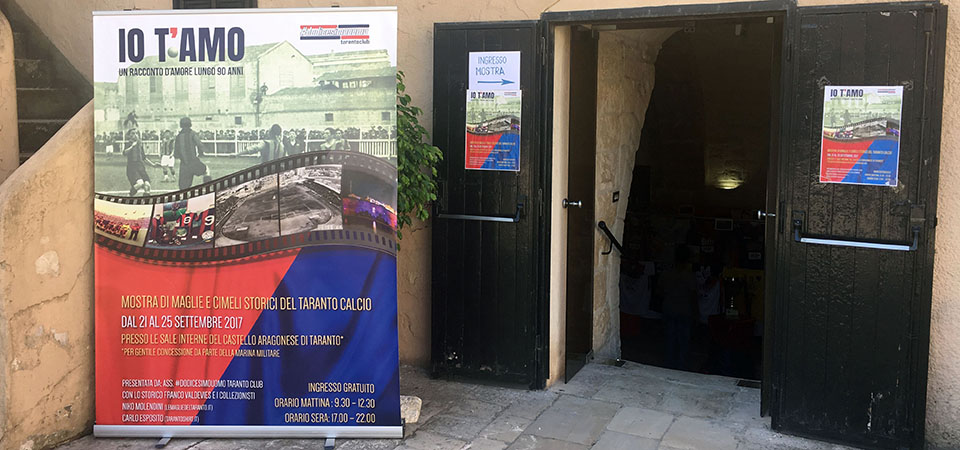 Arrivo alla fine della sala, ancora inebetito per tanto splendore e per i tanti ricordi che il nostro Taranto ci fa riaffiorare alla mente. Guardo mia figlia (che nel frattempo aveva fatto volare il suo cappellino una decina di volte e si sarà messa in bocca le scarpe altrettante volte) e le dico “Vedi amore, quanto sono belli questi due colori? Ti fanno soffrire, ti fanno gioire negli anni a prescindere da chi fa gol o da chi ce lo fa, da chi lo amministra e da chi lo vuole affossare, è sempre il Taranto Nostro, è sempre il nostro orgoglio”.